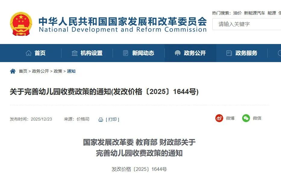 近日,为深入贯彻党的二十大和二十届历次全会精神,落实《中华人民共和国学前教育法》要求,更好促进学前教育普及普惠安全优质发展,有效降低人民群众保育教育成本,推动完善生育支持政策体系,国家发展改革委、教育部、财政部联合印发《关于完善幼儿园收费政策的通知》(发改价格〔2025〕1644号,以下简称《通知》)。