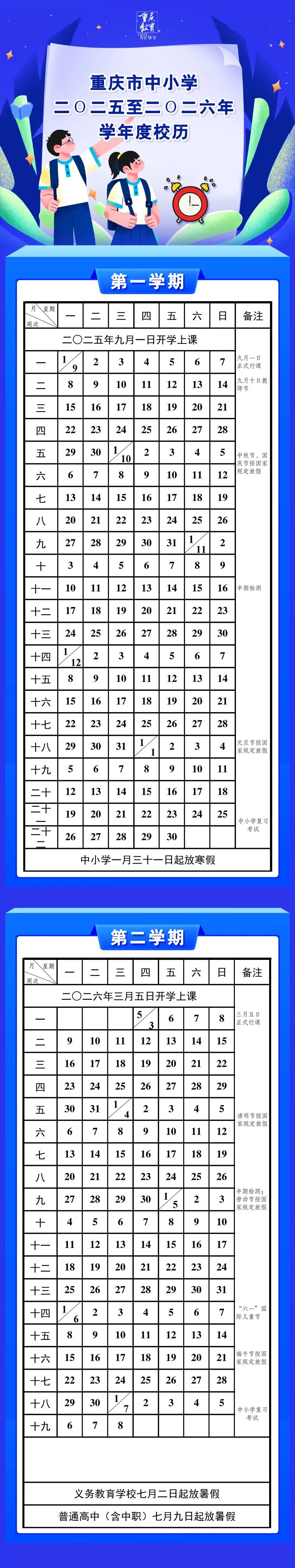 重庆市中小学2025—2026学年度校历。图源:重庆教育